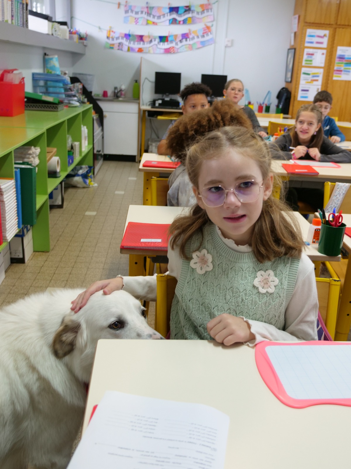 Au-delà de la lecture, la présence de Patou transforme l’ambiance de la classe. « Quand il est là, tout le monde parle plus doucement. On fait attention à ne pas faire de bruit pour ne pas le déranger. C’est très apaisé », constate Christine Dernoncourt. Les élèves, eux, apprennent aussi la responsabilité. « Ils tiennent un vrai rôle, s’occupent de lui, veillent à son bien-être. C’est très valorisant pour eux. »