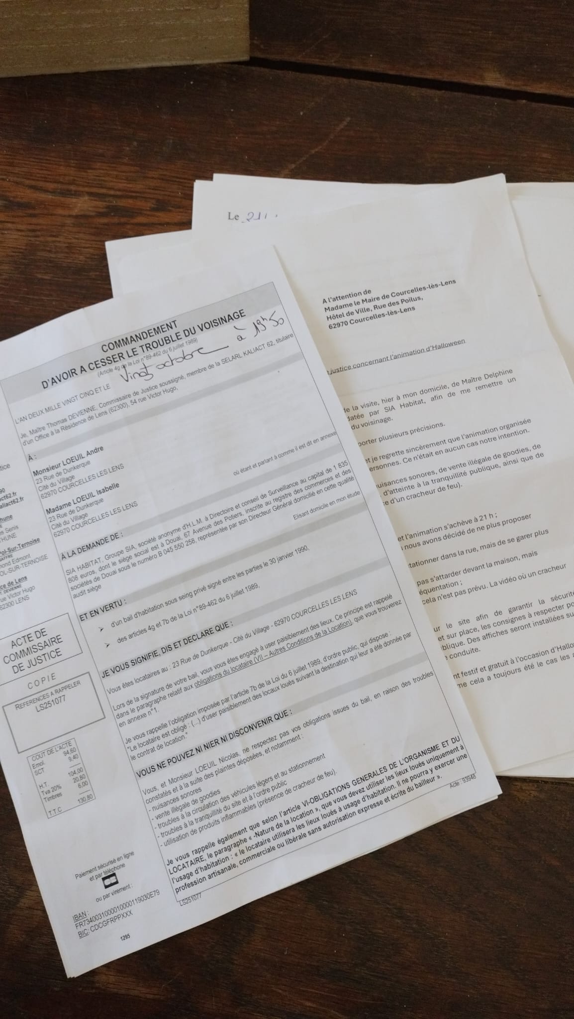 Oui, mais dès le lendemain, Nicolas et sa mère ont eu une mauvaise surprise : « Un huissier est venu déposer un commandement d’avoir à cesser le trouble du voisinage. » La mairie, qui aurait reçu des plaintes de voisins, a prévenu le bailleur social, SIA Habitat, propriétaire de la maison. « Il est écrit que si on n’arrête pas les faits reprochés, on peut être expulsés », explique Isabelle, en colère, avant d’ajouter : « On a eu cinq fois le passage de la police sur la même journée. »