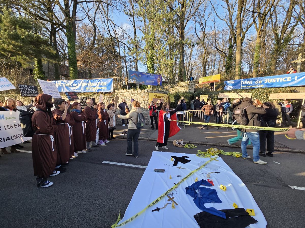La marche s’est tenue le jour même de l’organisation du village de Noël au sein de la communauté religieuse. Un choix assumé par les organisateurs. « Nous souhaitions attirer l’attention sur les procédures en cours et rappeler que des personnes disent avoir souffert ici », indique un membre du collectif.